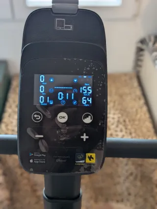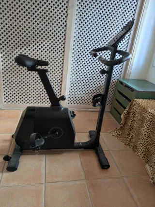Bicicleta estática Domyos EB520B en color negro. - Sillín ajustable. - Manillar con agarres. - Pedales con correas. - Pantalla digital. -12 programas integrados Utilizando no más de 10 veces 😏 pagado 350€