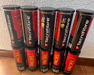 Set de 10 botes de pelotas de pádel Tecnifibre. - Modelo Padel. - Alta performance. - 3 botes de 3 pelotas cada uno, más 1 bote individual.