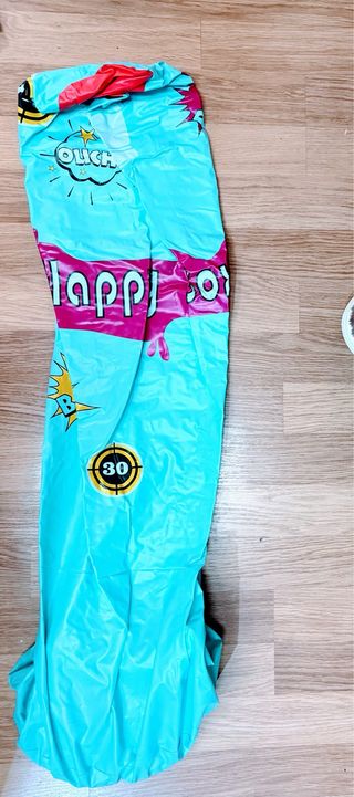 Divertido globo hinchable para que los niños practiquen boxeo. Su base se rellena con arena para mayor estabilidad. - Adecuado para niños pequeños también. Se va volando fácilmente. - Fue un gran éxito para mi hijo de 5 años. - Diseño llamativo con colores vibrantes. - Incluye el texto OUCH y HAPPY SO con estética de cómic. - Presenta un objetivo con el número 30.