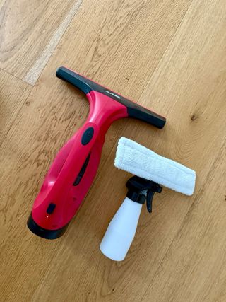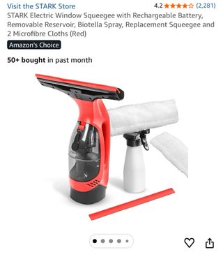 Limpiaventanas eléctrico STARK en color rojo. Incluye accesorios para una limpieza completa. Muy bien estado, solo usado una vez. - Depósito extraíble. - Botella de spray Biotella. - Repuesto de escobilla. - Paño de microfibra. Lo compre por 45e, lo vendo por 20e.