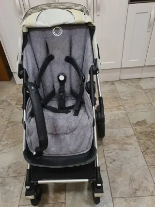 Carrito Bugaboo Fox en color gris melange, modelo de 2019. Un cochecito versátil y ligero. - Chasis de aluminio. - Capazo y silla. - Capota extensible. - Arnés de 5 puntos. - Ruedas todoterreno. -Saco de invierno - Bolso para el Carrito - Capota de verano y de invierno