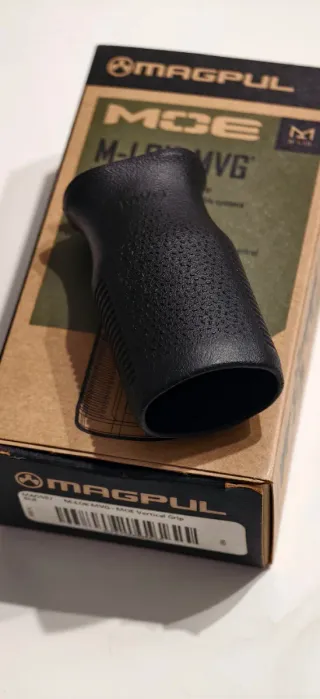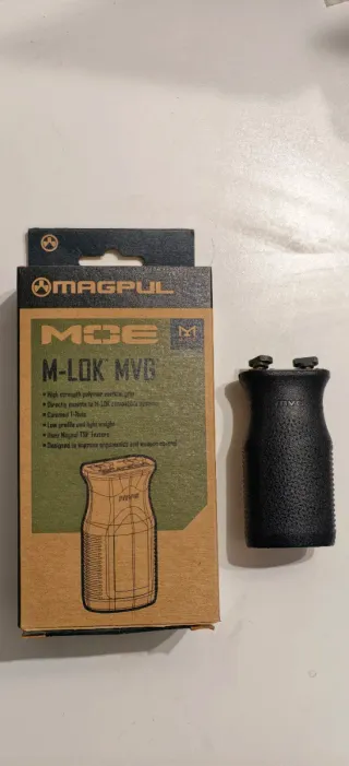 Empuñadura vertical Magpul MOE M-LOK en color negro. Diseñada para mejorar el agarre y el control. - Fabricada en polímero resistente. - Textura antideslizante para un mejor agarre. - Compatible con el sistema M-LOK.