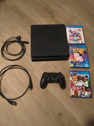 Consola Playstation 4 en color negro, ideal para disfrutar de tus juegos favoritos. - Incluye mando DualShock 4. - Cable de alimentación. - Cable HDMI. - Juegos: Just Dance 2019 - Just Dance 2020 - The Sims 4.
