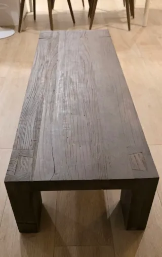 Mesa de centro robusta y elegante, fabricada en madera maciza de olmo. - Largo 150cm, ancho 50cm, alto 30cm. - Patas sólidas para mayor estabilidad. - Comprado en Maisons du Monde por 500€. A tener en cuenta para el transporte que la mesa pesa bastante debido a la madera maciza.