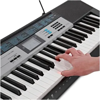 Teclado Casio LK-136 con 61 teclas luminosas. ¡Horas de diversión! - Teclado sensible a la pulsación. - 12 notas de polifonía. - 120 tonos. - 70 ritmos. - 100 canciones incorporada - Función de lección. - Pantalla LCD. La funda y fuente de alimentación eléctrica incluida. Las pegatinas en las notas para ayudar a aprender música...se quitan fácilmente si no quieres usarlas. Perfecto estado de funcionamiento y apariencia.