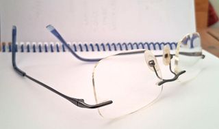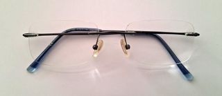 Montura de gafas de la marca Visibilia, fabricada en titanio. Su diseño combina tonos azules y grises. Los cristales están graduados (los ha de manipular un profesional), pero lo importante es la montura. - Material: Titanio - Color: Azul y gris