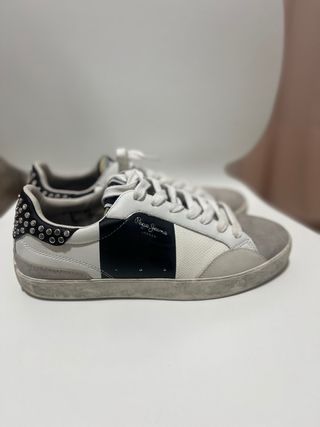 Vendo zapatillas/bambas Pepe Jeans originales, en excelente estado. Detalles destacados: • Tachuelas decorativas en el talón • Logo de Pepe Jeans en el lateral Estado: • Usadas solo 2 veces • Sin roturas ni defectos • Limpias y bien cuidadas Me costaron alrededor de 60 €. Las vendo porque no les doy uso. Para cualquier duda o más fotos, escríbeme sin compromiso.