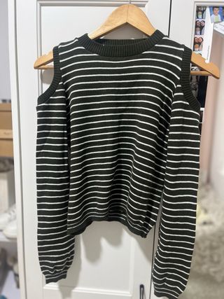 Vendo jersey de punto de tienda local, en muy buen estado, apenas usado. Características: • Diseño de rayas verdes y blancas • Corte con hombros descubiertos, original y favorecedor • Tejido suave, cómodo y agradable al tacto • Fácil de combinar, tanto para diario como para ocasiones informales Estado: • Usado solo 3 veces • Sin manchas ni desperfectos • Muy bien cuidado, prácticamente como nuevo. Precio original: entre 20–25 € Lo vendo porque no lo utilizo. Para cualquier duda o más información, escríbeme sin compromiso.