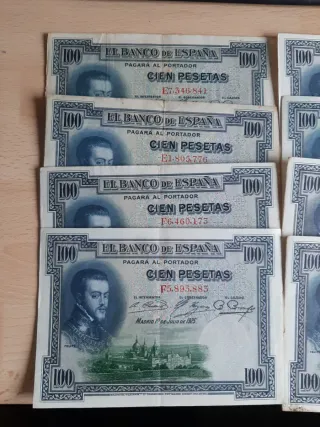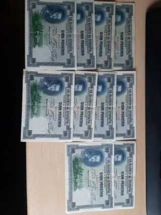 Billetes de 100 pesetas del Banco de España, emitidos en 1925. Opción de intercambio. PRECIO POR UNIDAD. Puedes elegir la Serie que quieras. También acepto intercambio. - Serie F4687598 - Serie E7345541 - Serie F0378028 - Serie E1805776 - Serie F6160173 - Serie P5895883 - Serie F105251 - Serie E5100234 - Serie E9663747 - Serie E105257