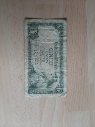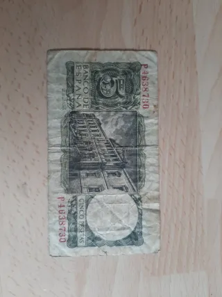 Billete de 5 pesetas del Banco de España, emitido en Madrid el 22 de julio de 1951. También acepto intercambio. - Serie: 5 Pesetas. - Fecha de emisión: 22 de julio de 1951. - Lugar de emisión: Madrid. - Entidad emisora: Banco de España. - n°P4638730