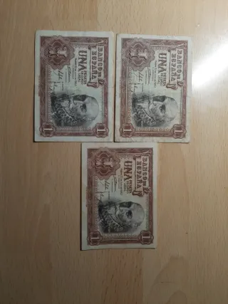 Billetes de 1 peseta de España, con fecha de emisión del 22 de julio de 1953. PRECIO POR UNIDAD. Puedes elegir el numero que quieras. También acepto intercambio. - n° W8415516 - n° G7728308 - n° Y5010417