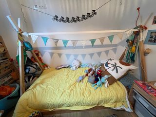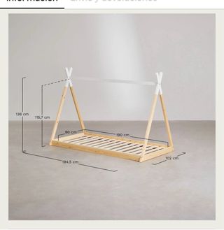 Cama tipi de Sklum en color madera, con unas medidas de 90x190 cm. Su diseño inspirado en las tiendas indias la hace perfecta para habitaciones infantiles. - Estructura de madera de pino. - Diseño tipi. - Medidas: 90x190 cm.