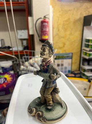 Figura decorativa de un señor tocando el acordeón. Una pieza con un diseño original y llamativo. - Base con detalles ornamentales. - Ropajes detallados y expresivos.