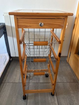 Carrito Cocina Madera con Cajón y Cestas
