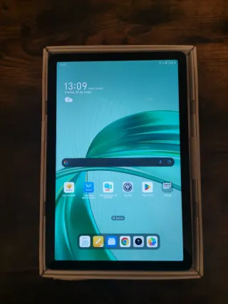 Tablet Honor Pad en color negro. Es nueva no se ha usado. Lista para hacer la configuración inicial. Aparte viene con su funda original más teclado y demás.