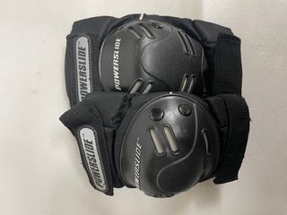 Conjunto de equipamiento para defensa personal y entrenamiento de boxeo. - Protecciones para rodillas y codos. - Guantes de boxeo. - Protector de torso. - Muñequeras.