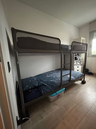Litera infantil de estructura metálica y detalles en tela. - Ideal para habitaciones infantiles. - Diseño moderno y funcional.