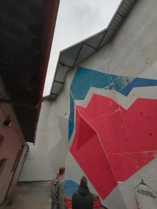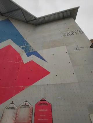 Estructura de rocódromo para escalada. - Diseño moderno con formas geométricas.