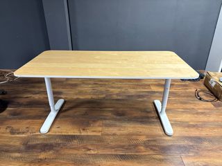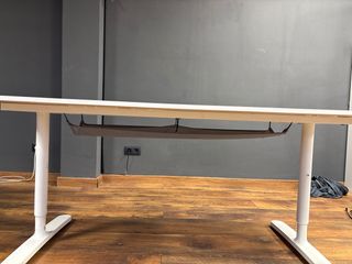 Escritorio con un diseño moderno y funcional. - Tablero de madera con acabado natural. - Patas de metal en color blanco. - Altura regulable (no automático) - Tenemos 3