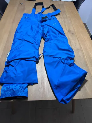 Pantalones de esquí de color azul, diseñados para niños y niñas de 10 años. Son cómodos y funcionales para actividades en la nieve. - Tirantes ajustables. - Cremallera frontal. - Bolsillos laterales.