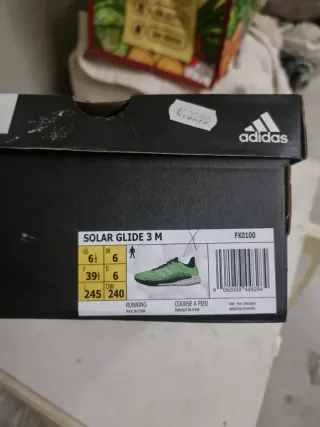 Zapatilla Adidas Solar Glide sin estrenar. - Diseño deportivo en verde y blanco. - Cordones negros. - Suela blanca con detalles grises.