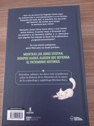 Libro de aventuras de Manuela Jones "El misterio de la Alhambra, de Miriam Mosquera, libro de tapas duras. No se ha estrenado.
