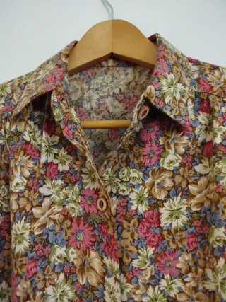 Blusa fresca con estampado floral, confeccionada a medida. - Diseño de manga corta. - Cuello camisero. - Cierre de botones.