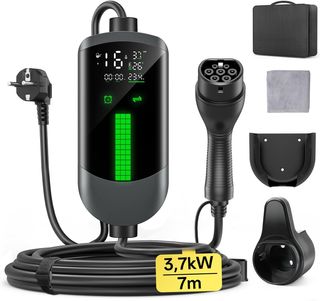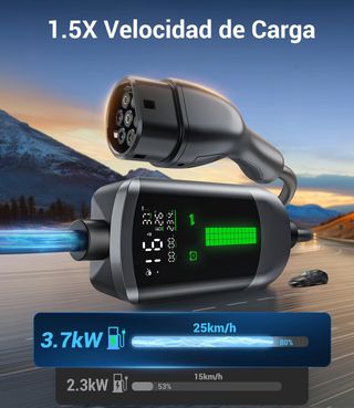 enchufe schuko 16A, corriente ajustable: 6A/8A/10A/13A/16A, potencia máxima de carga de 3,7kW (230Vx16A), unos 25 km/h con una función de carga diferida de 1-12H. Puedes programar la hora de inicio de la carga durante la noche. 7 metros te permite cargar fácilmente un segundo fabricado con TPU de alta calidad, con certificación IP65 de resistencia al agua y al polvo, soportar condiciones climáticas desde -30 °C hasta 50 °C. Con protección contra sobrecorriente, sobretensión, subtensión, fugas y sobrecalentamientos es compatible con todos los vehículos eléctricos e híbridos enchufables europeos que cumplen con la norma IEC 62196-2
