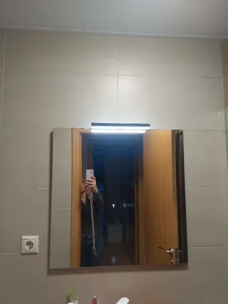 Espejo de lavabo con un diseño elegante y moderno. - Marco de madera. - Superficie de cristal.