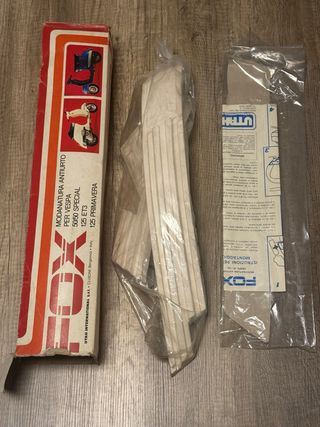 Juego de molduras completas, nuevas y en su caja, nunca montada. Procedente de antiguo stock. Tiene la plantilla para su montaje. Marca FOX. Conservada en almacén, puede presentar marcas estéticas por el paso del tiempo. Mecánicamente a estrenar. Se envía bien protegida. Sirve para Vespa 125 ET3, 125 primavera y seguro que sirve para más modelos.
