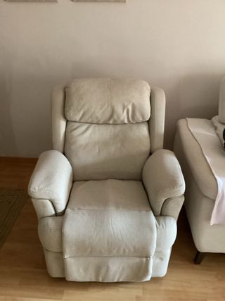 Sillón reclinable manual en color beige. Se encuentra en buen estado. - Tapicería de tela. - Mecanismo de reclinación manual.Totalmente desenfundable.Tela muy comoda para limpiar.