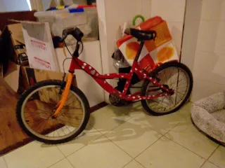 Bicicleta infantil de color rojo, los frenos funcionan pero tienen oxido y radios de la rueda también, la rueda trasera está pinchada - Cuadro de metal resistente. - Ruedas de gran tamaño para mayor estabilidad. - Diseño divertido con lunares blancos.