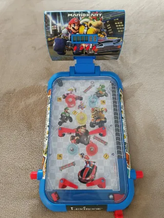 Divertido juego de pinball con temática de Mario Kart. Tiene su caja - Diseño colorido con personajes del juego. - Incluye palancas para jugar. - Pantalla digital para puntuación.