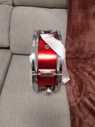 Tambor de la marca DB Percussion con correa blanca. - Diámetro del tambor visible. - Correa de tela blanca.