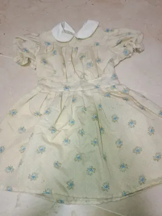 Vestido de manga corta con cuello blanco. - Estampado de flores azules y topos. - Cintura marcada con vuelo. - Cuello Peter Pan. Nancy lode barriguitas Barbie gijoe Rosaura famosa juguetes antiguos cinexin Scalextric patabollo jesmar muñecas repollo Playmobil Lego años 80 años 70