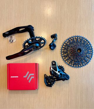 Grupo de transmisión SRAM X0 AXS, completamente nuevo, sin uso. - Incluye bielas de 165 con plato de 34 - Cambio trasero. - Cassette. - Mando inalámbrico. - Caja original SRAM. En mano, no envío.