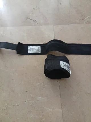 Par de vendas de boxeo de la marca Everlast. Son de color negro y están diseñadas para proteger tus manos. - Marca: Everlast - Color: Negro - Material: Tela resistente Sólo para vender a gente de la zona de Alicante.