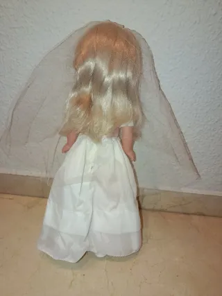 Muñeca Nancy vestida de comunión, original de los años 80. Conserva su traje original con velo y detalles. - Vestido blanco de comunión. - Velo. - Cinta rosa con lazo. - Detalle de flor bordada. Nancy,barriguitas,Barbie,gijoe, Rosaura famosa,juguetes antiguos, cinexin,Scalextric, patabollo, jesm,ar, muñecas repollo, Playmobil,Lego, años 80,años 70,