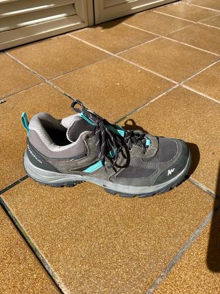 Zapatillas de trekking para mujer, ideales para senderismo y actividades al aire libre. Modelo MH100 gris. Solo las he usado un par de veces. - Suela con buen agarre - Impermeables - Refuerzo de caucho en la puntera