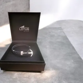 Pulsera Lotus Ancla Plata y Negro