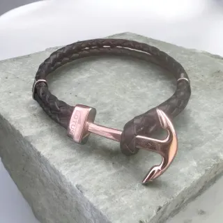 Pulsera de estilo náutico con un diseño de ancla. - Pulsera trenzada en color negro. - Cierre y detalle de ancla en color plateado.