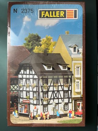 Maqueta de edificio con farmacia en escala N de la marca Faller. - Modelo: 2375 - Escala N - Diseño de casa tradicional alemana con entramado de madera.