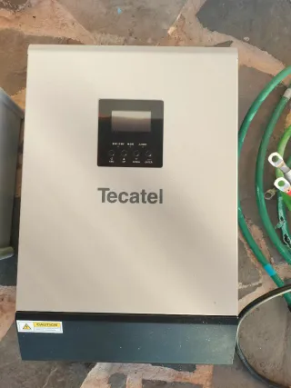 Se vende Inversor de la marca Tecatel, ideal para sistemas de energía solar por cambio de instalación. - Pantalla digital para monitoreo. - Botones de control. - Indicadores LED de estado. - Etiqueta de advertencia de seguridad. Se regala con el equipo los accesorios y un armario para colocar las baterías todo ello valorado en más de 1000€