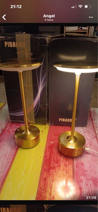 Conjunto de dos lámparas de noche con un diseño moderno y elegante. - Acabado metálico en color dorado. - Base redonda y estable. - Ideales para mesitas de noche o escritorios. Tactiles,csrgs USB,4 tonos de luz