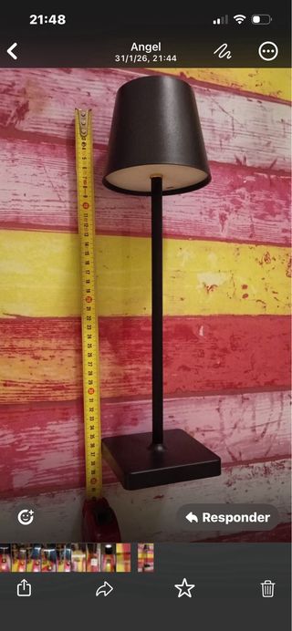 Lámpara de noche con un diseño moderno y elegante. - Acabado en color negro. - Base y estructura de metal. - Pantalla de plástico. Carga USB Le falta la caja