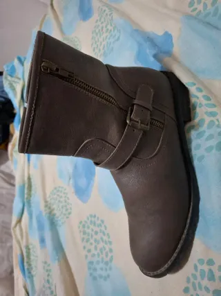 Botas de invierno con un diseño moderno y práctico. - Material exterior de ante. - Detalle de hebilla metálica. - Cierre de cremallera lateral. Fueron un regalo. Me las he puesto un par de veces, creo que son demasiado ajustadas para mi pie.