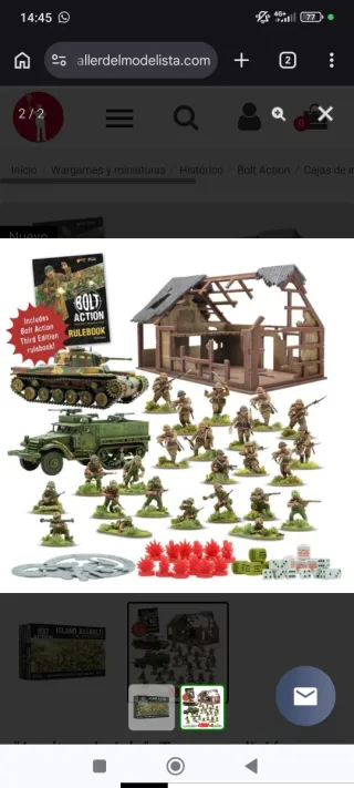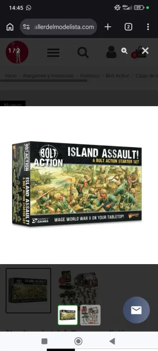 Caja de Bolt Action Island Assault, juego de miniaturas de la Segunda Guerra Mundial. - Incluye libro de reglas de Bolt Action Tercera Edición. - Contiene miniaturas de soldados y vehículos. - Incluye escenografía de ruinas.