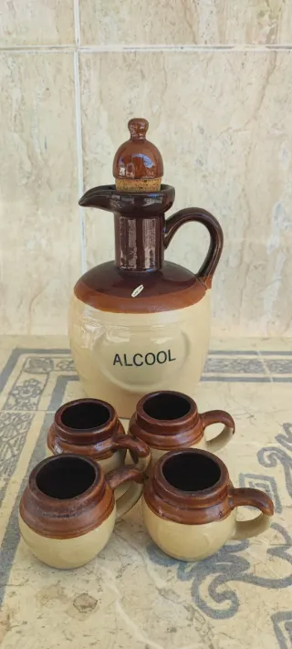 Botella cerámica ALCOOL con 4 vasos