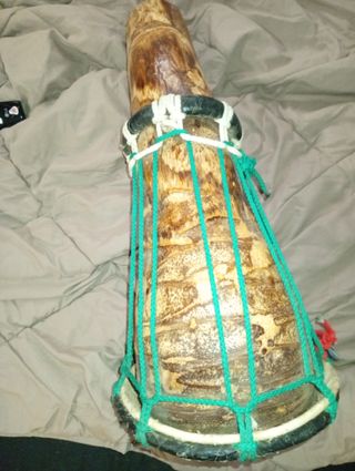 Timbal artesanal fabricado en Africa,mide 66cm d largo x 26cm d ancho,echo con tronco de palmera a mano en África,suena súper bien y fuerte y es muy decorativo también. - Instrumento musical único. - Hecho a mano en África. - Diseño rústico y natural.