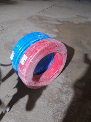 Se venden dos rollos de tubo multicapa, uno azul y otro rojo, cada uno de 50 metros. - Tubo multicapa aislado. - Color azul. - Color rojo. - Longitud de 50 metros por rollo. Cada rollo cuesta 60e en tienda Lo dejo cada uno por 50e
